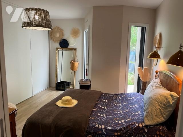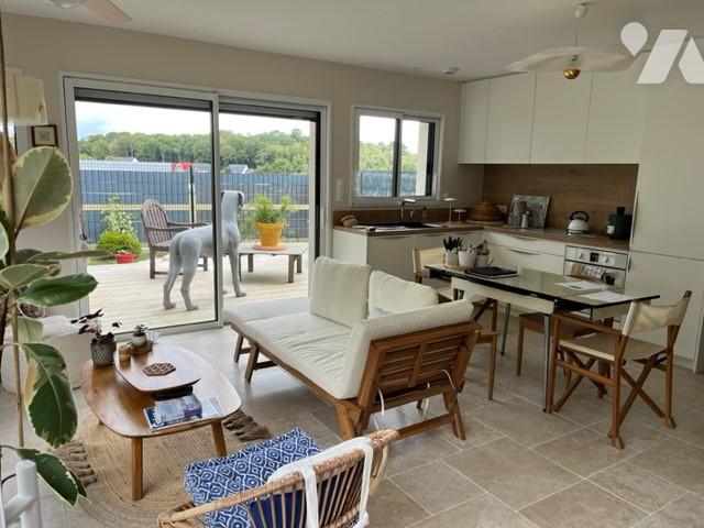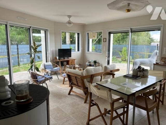Proche de tout, l'avantage du plain pied pour cette maison de 2023 avec 2 chambres . Belle pièce à vivre lumineuse ouverte sur cuisine aménagée et équipée, jardin clos de 263 m2 avec 2 parkings .Intérieur agréable et soigné. A visiter rapidement .